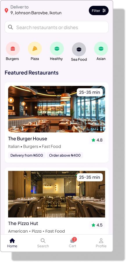 ChowXpress is a fast-growing food delivery startup aiming to provide users with a seamless, fast, and intuitive ordering experience. I was brought on to redesign their mobile app interface with a user-centered approach, streamlining the ordering process from discovery to checkout.